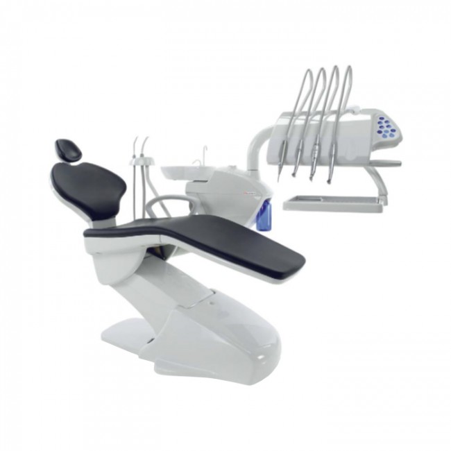 Съемная и автоклавируемая керамическая плевательница, поворачивающаяся на 180 градусов, таймер автоматического наполнения стакана и плевательницы, прямой слив. Система автономной воды блок-бутылка.
