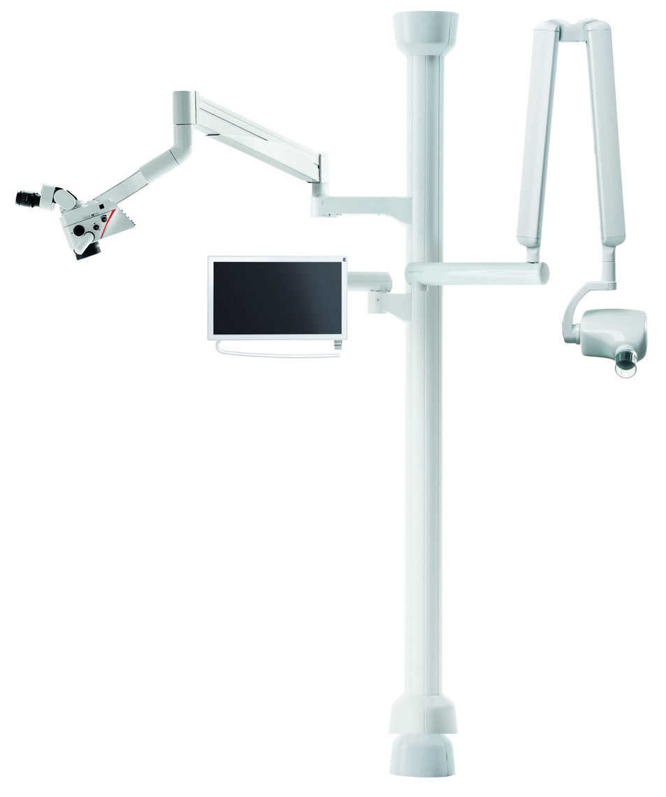 Открытая несущая система у стоматологической установки. Быстрая доступность к рабочим элементам экономит ваше время и препятствует лишней трате сил. Все находится непосредственно под вашей рукой: операционный светильник, рентген-аппарат, операционный микроскоп, дополнительные приборы, монитор – все техническое оборудование вашего кабинета.