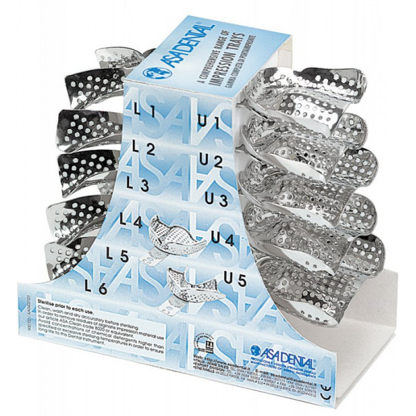 • Ложка слепочная, набор 11 штук, с перфорацией без бортиков для беззубых челюстей, Asa Dental (Италия)