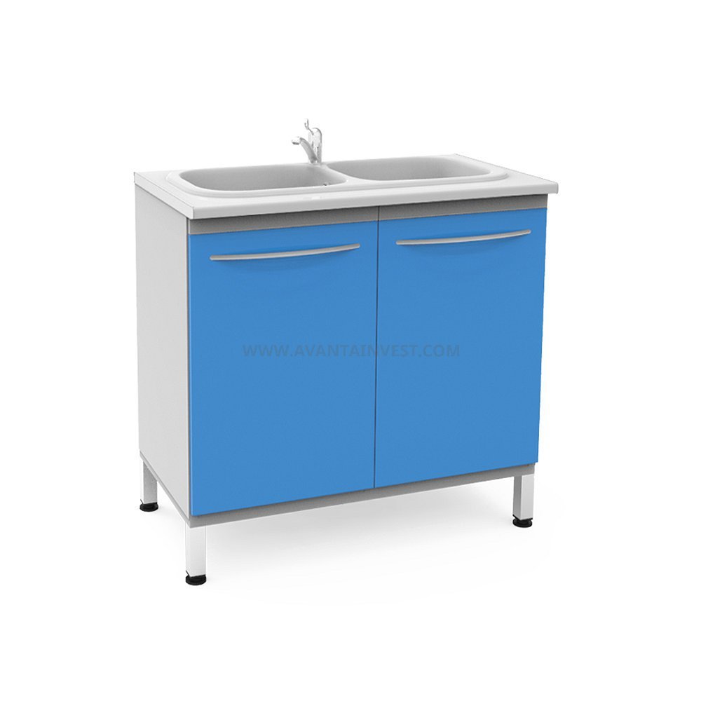 • Модуль П-102-М (Тумба с двойной мойкой из акрила, смесителем, корзиной для мусора) "Бюджет"